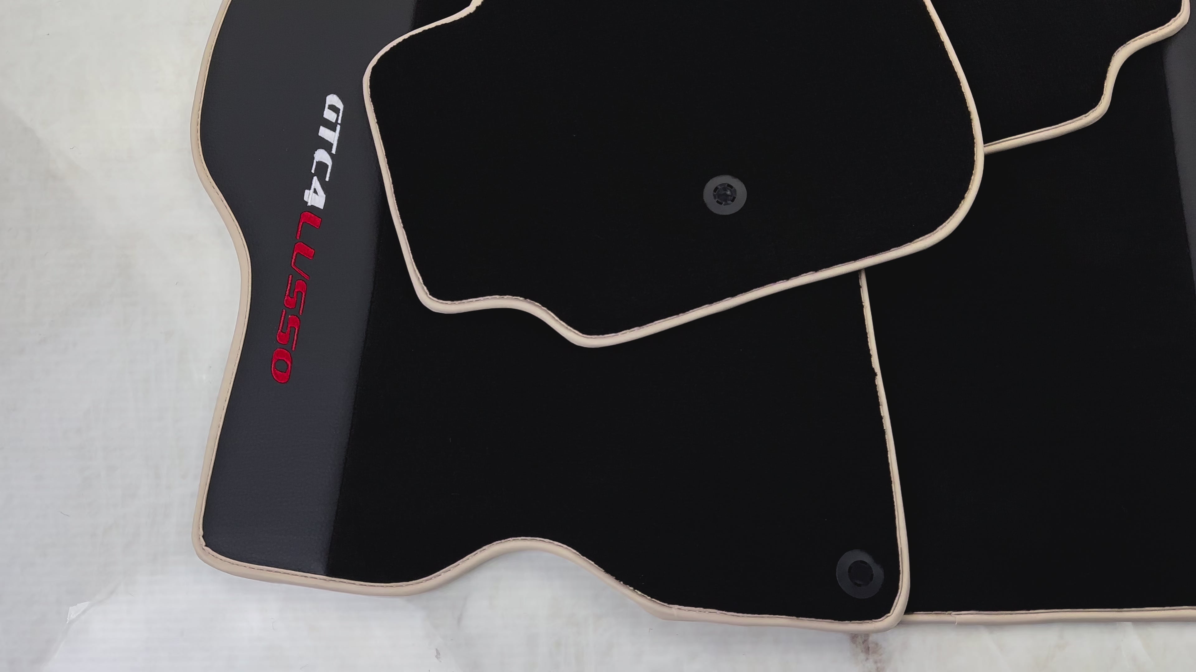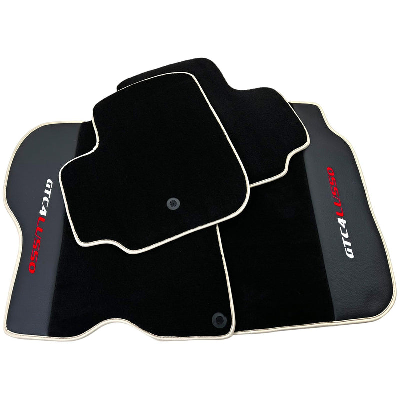 Czarne maty samochodowe do Ferrari GTC4 Lusso (2016-2023) z skórą | Beżowe wykończenie