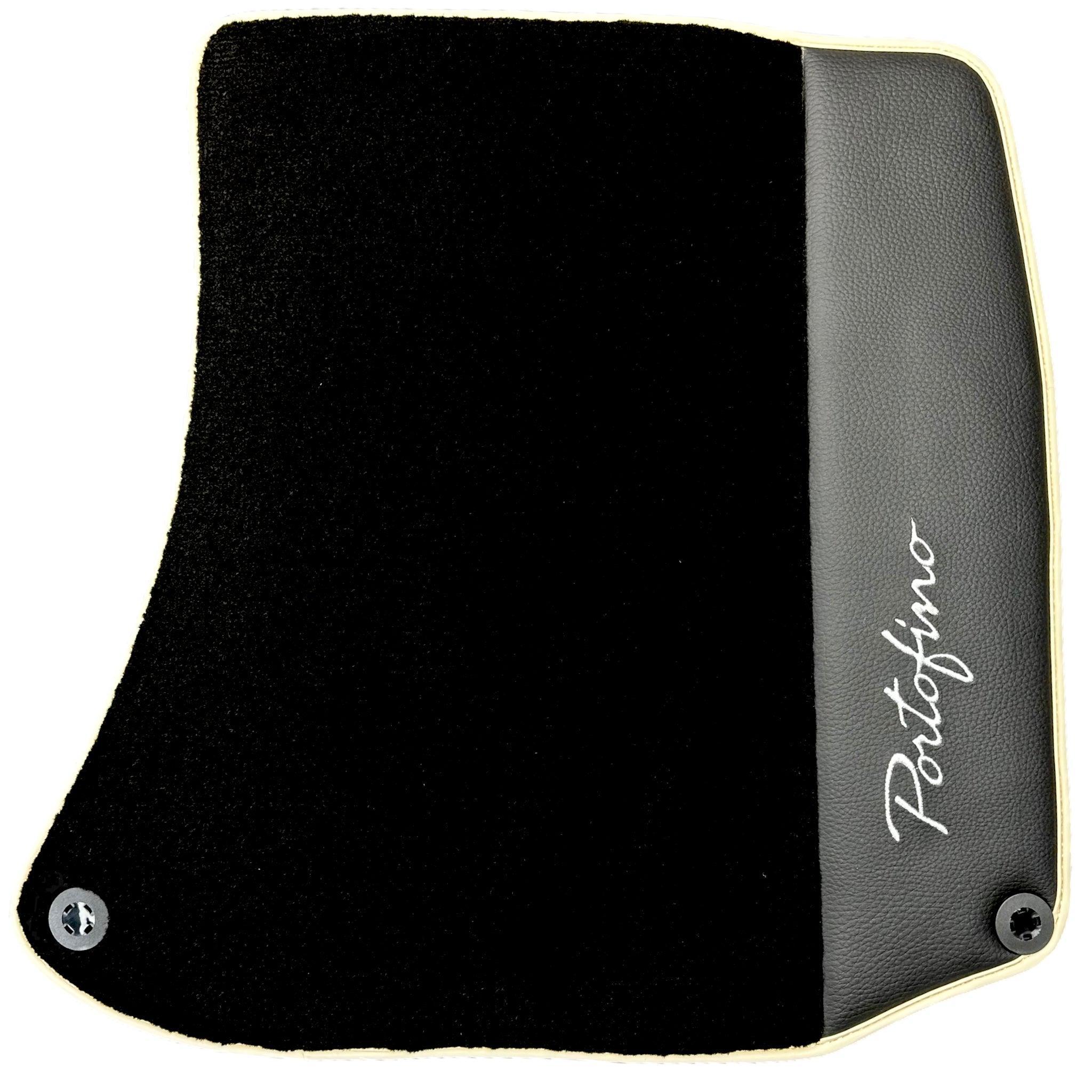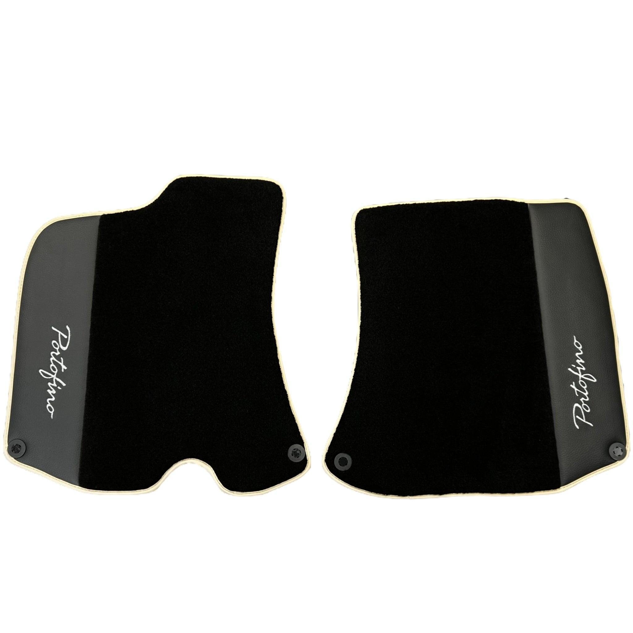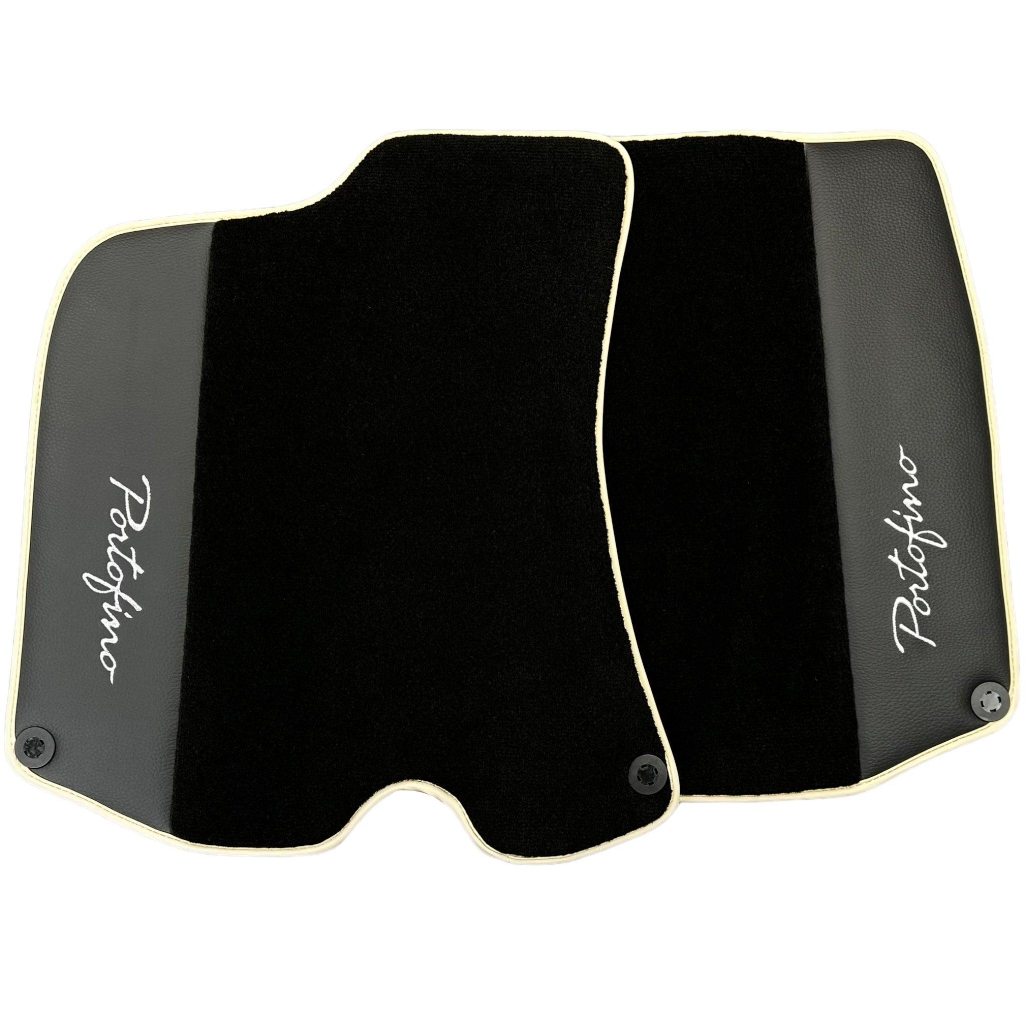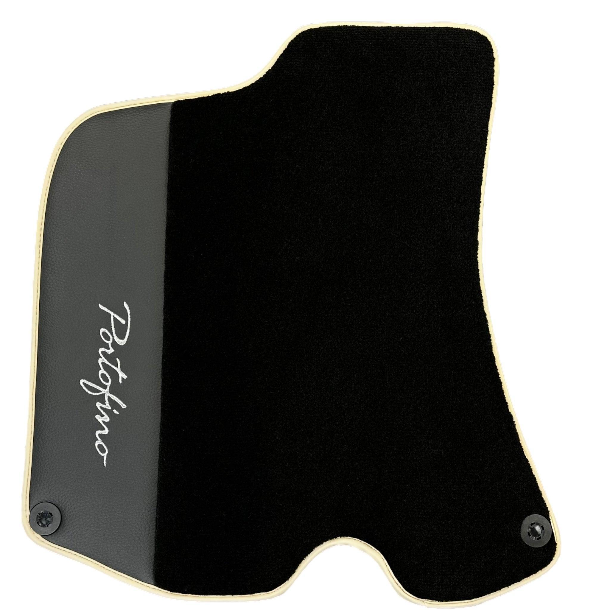 Czarne dywaniki samochodowe do Ferrari Portofino (2018-2023) ze skórą i beżowymi wykończeniami