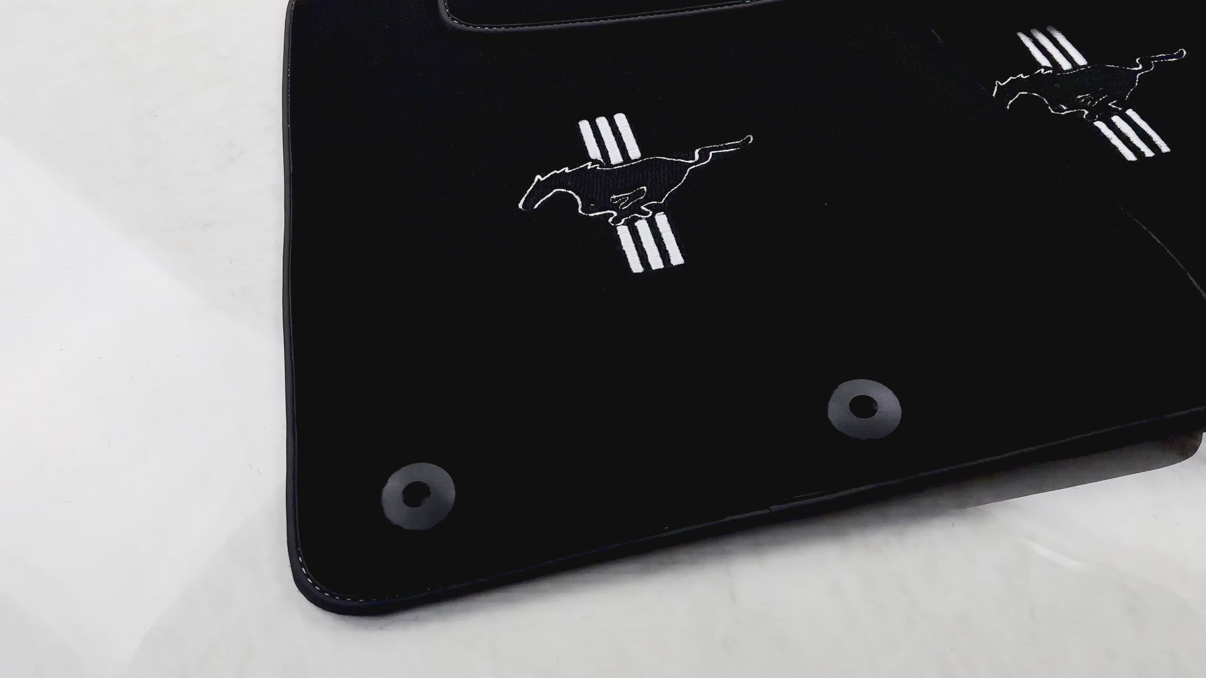 Czarne dywaniki samochodowe do Forda Mustanga V FL (2011-2014) z symbolem pony