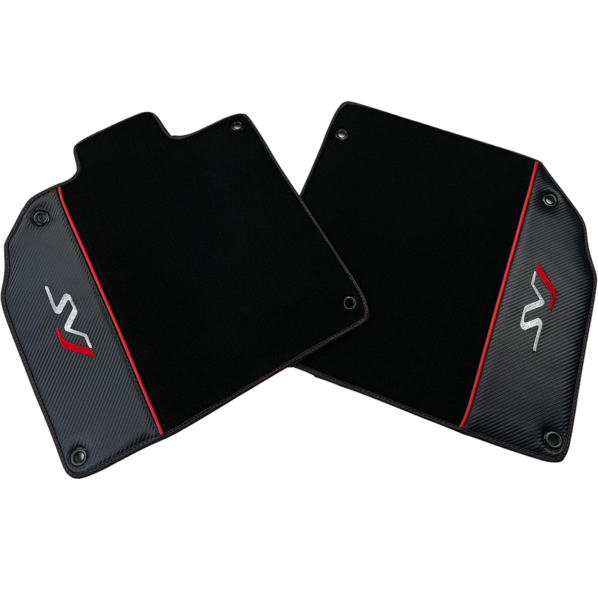 Perfekcyjnie wykonane dla Lamborghini Aventador SVJ, te czarne dywaniki samochodowe charakteryzują się eleganckim designem z włókna węglowego z czerwoną linią. Dzięki idealnemu dopasowaniu i trwałej konstrukcji nie tylko poprawiają estetykę wnętrza, ale także zapewniają doskonałą ochronę podłóg w Twoim pojeździe. Ulepsz swoje doświadczenie z jazdy dzięki tym dywanikom samochodowym premium.