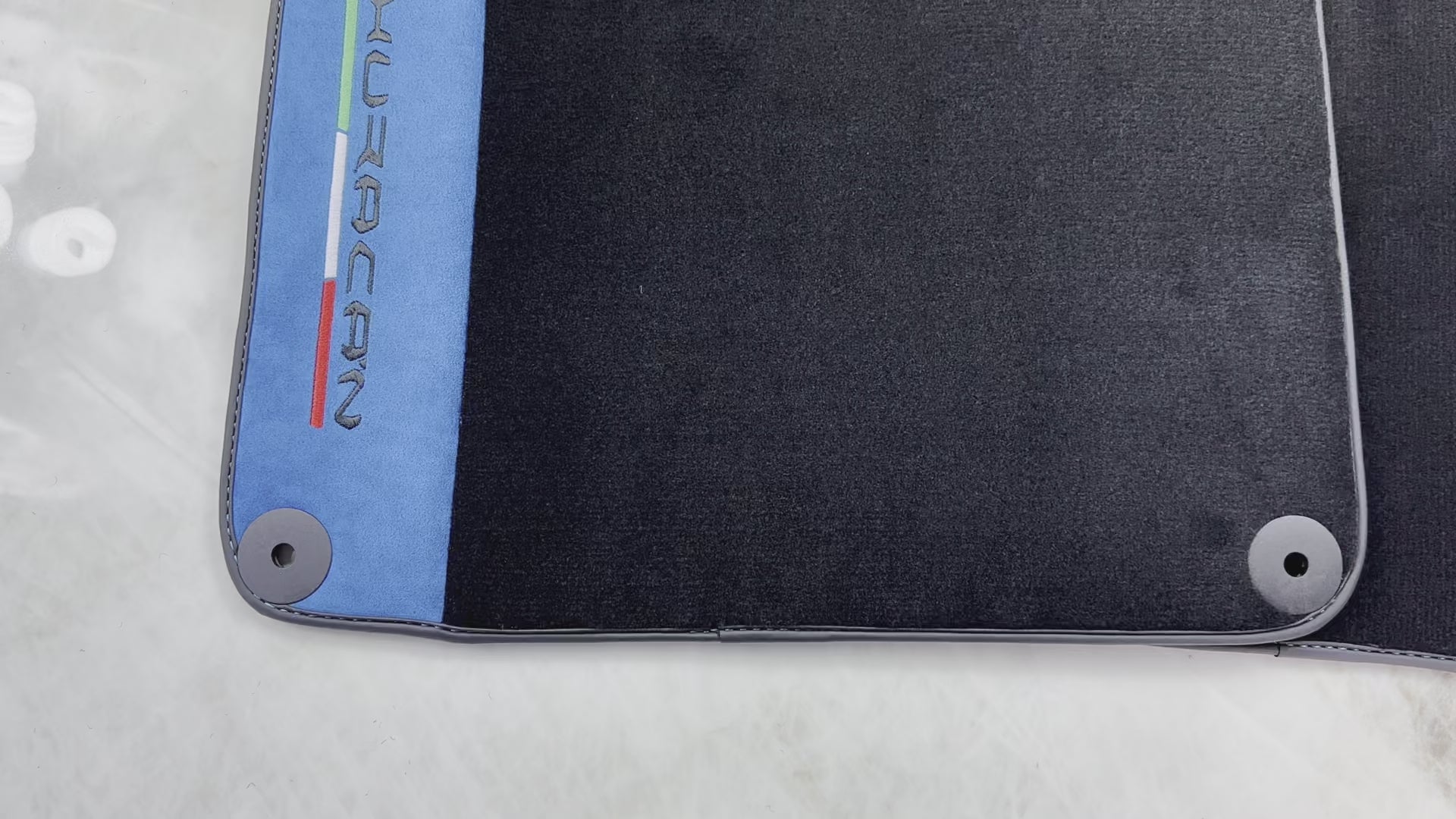 Czarne dywaniki samochodowe do Lamborghini Huracan 2014-2023 z niebieską skórą Alcantara