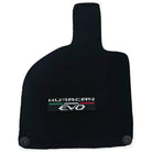 Czarne dywaniki samochodowe do Lamborghini Huracan EVO (2019-2024) z białym wykończeniem