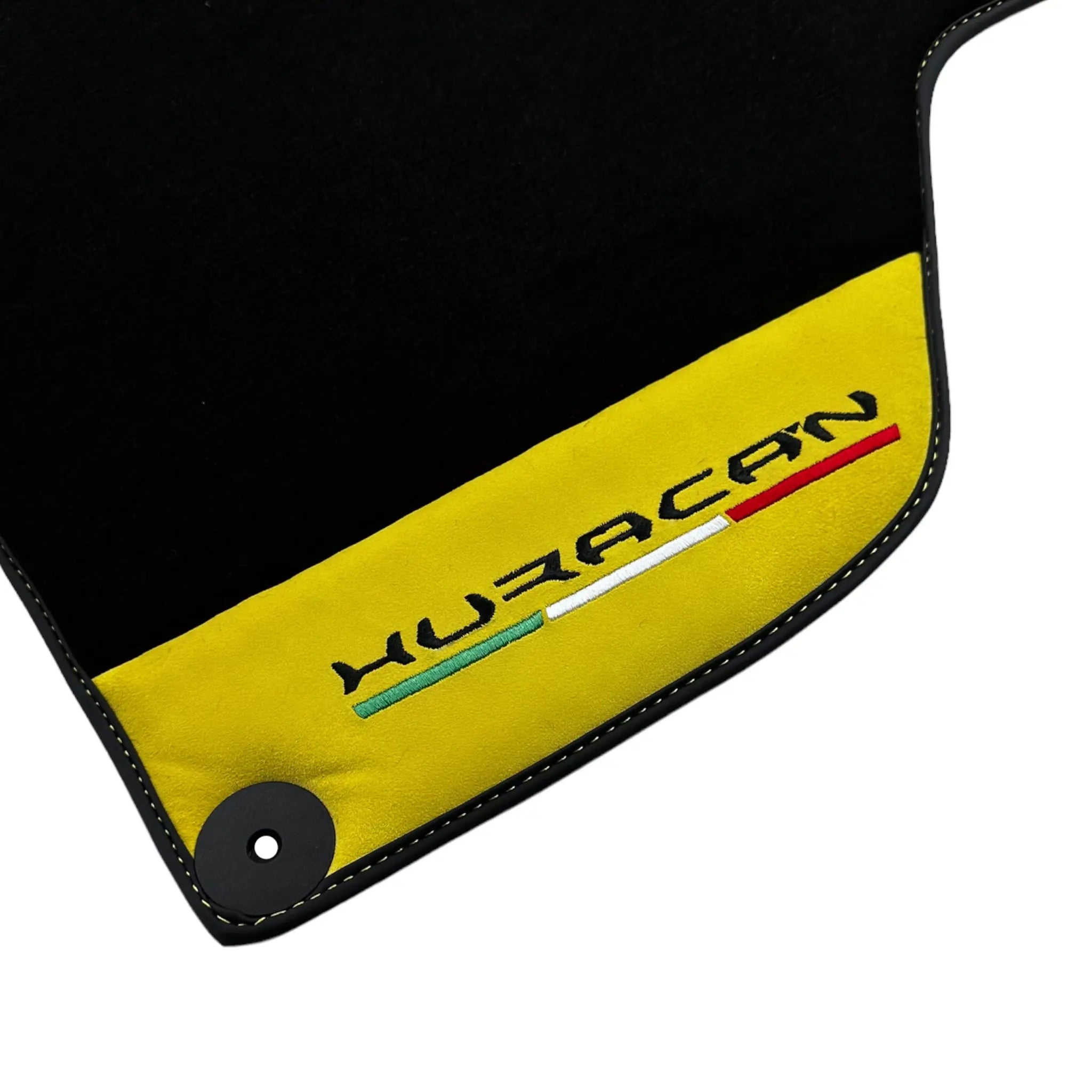 Czarne dywaniki samochodowe dla Lamborghini Huracan z żółtą skórą Alcantara