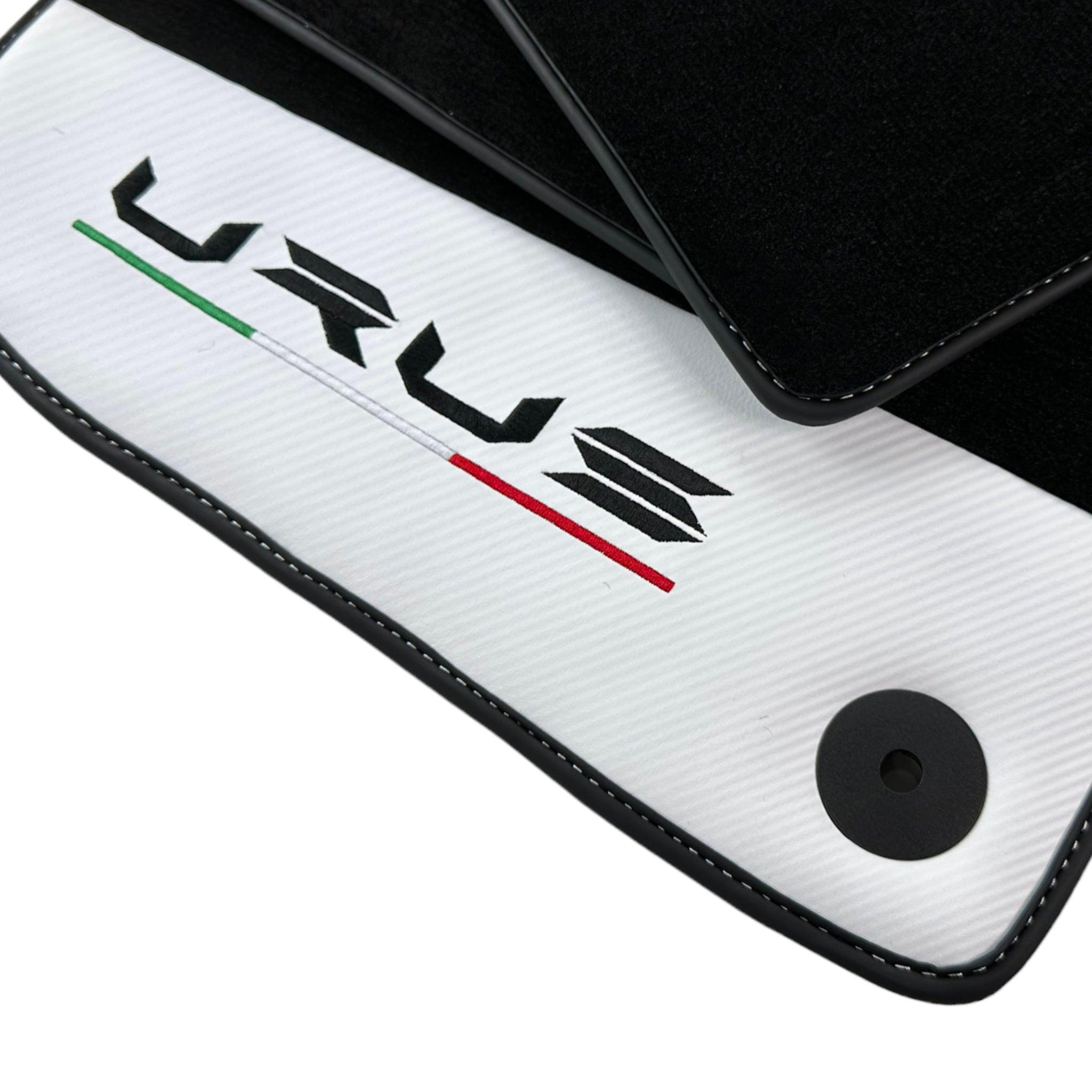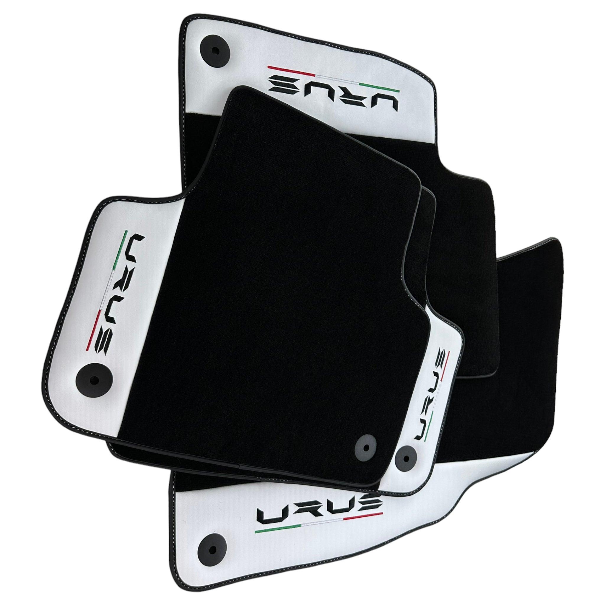 Czarne maty samochodowe do Lamborghini Urus z białą skórą