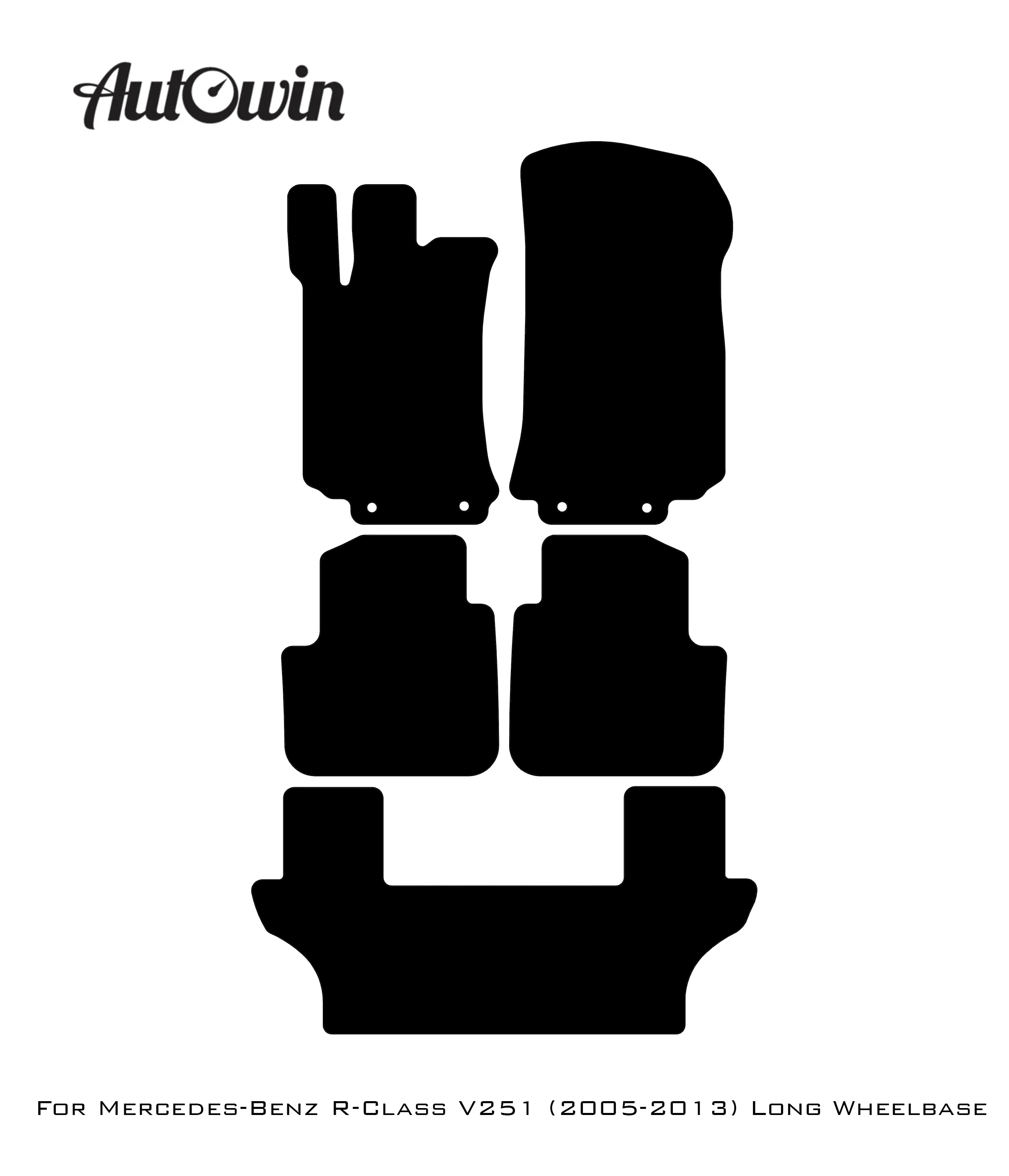 Czarne skórzane maty samochodowe dla Mercedes Benz R-Class V251 (2005-2013) z długim rozstawem osi | Design ER56