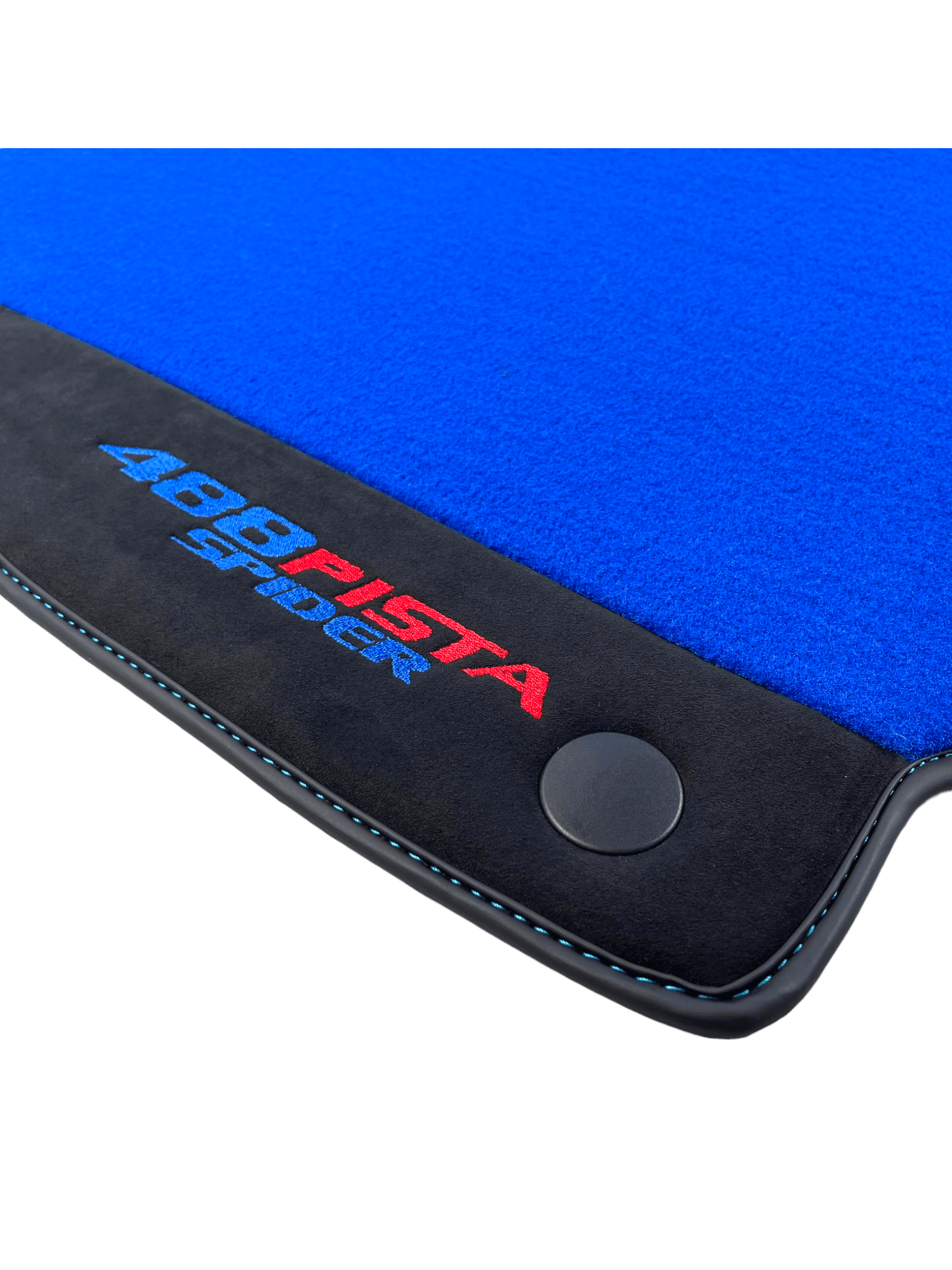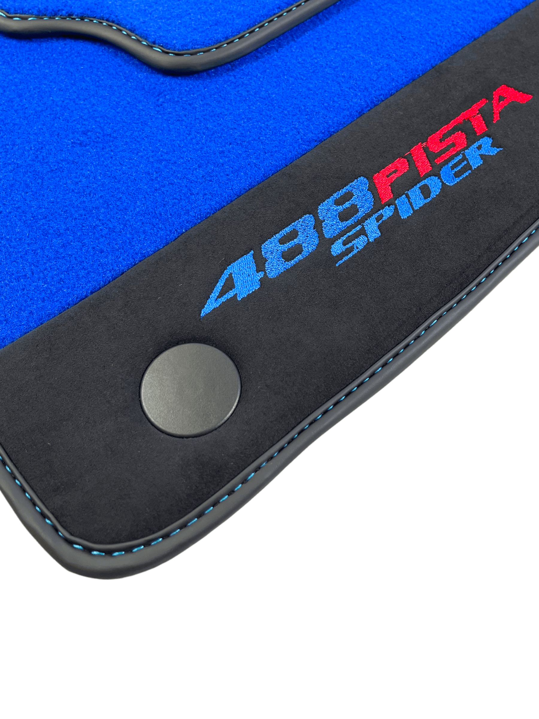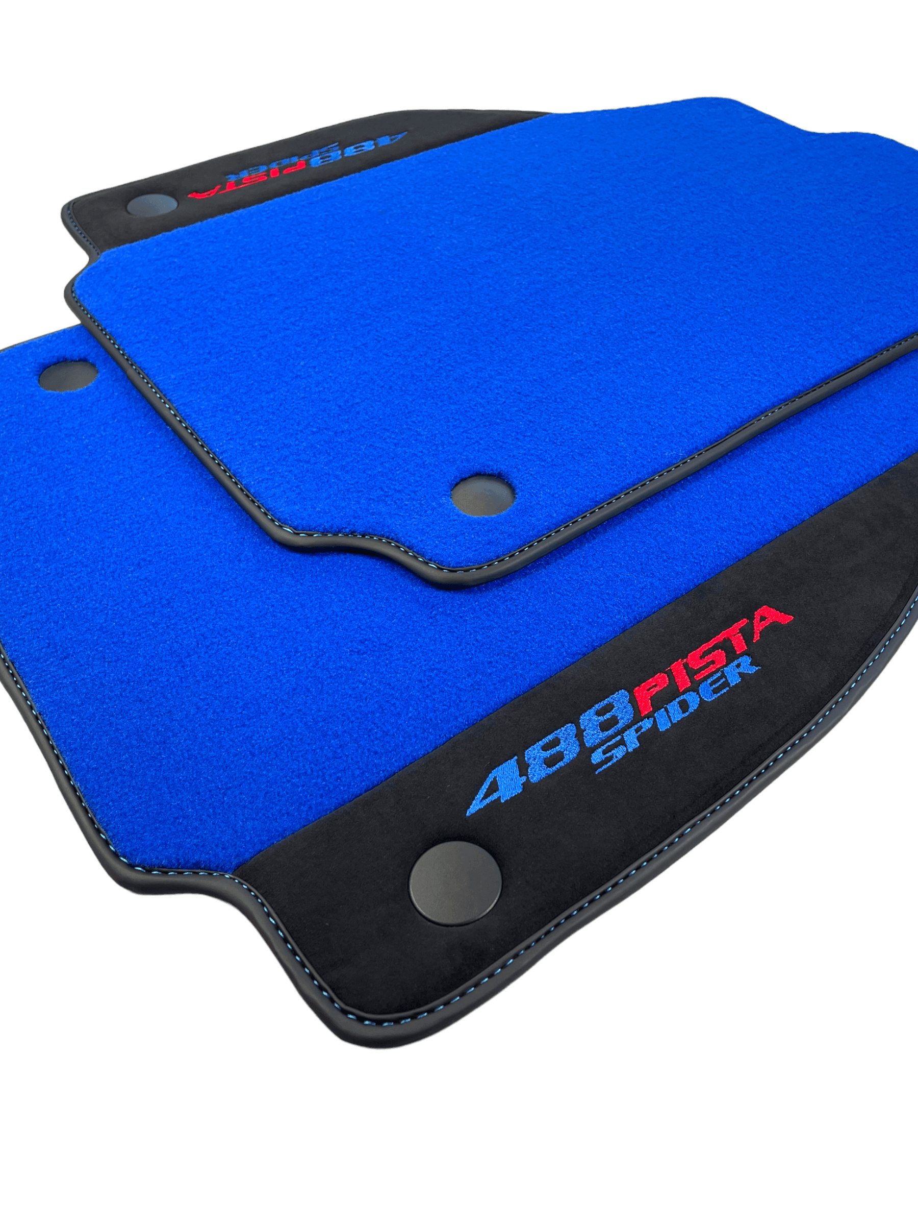 Niebieskie dywaniki samochodowe do Ferrari 488 Pista Spider 2019-2021 z Alcantarą