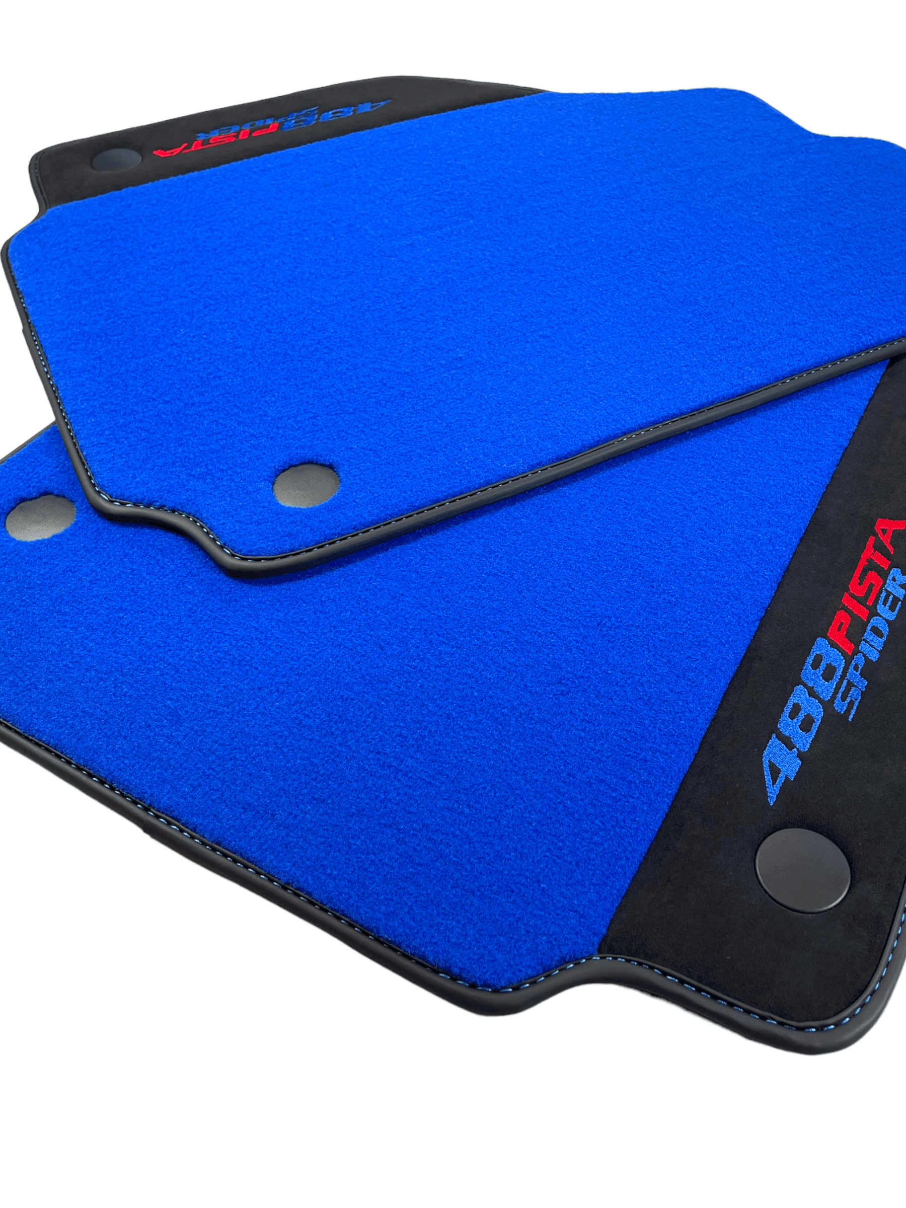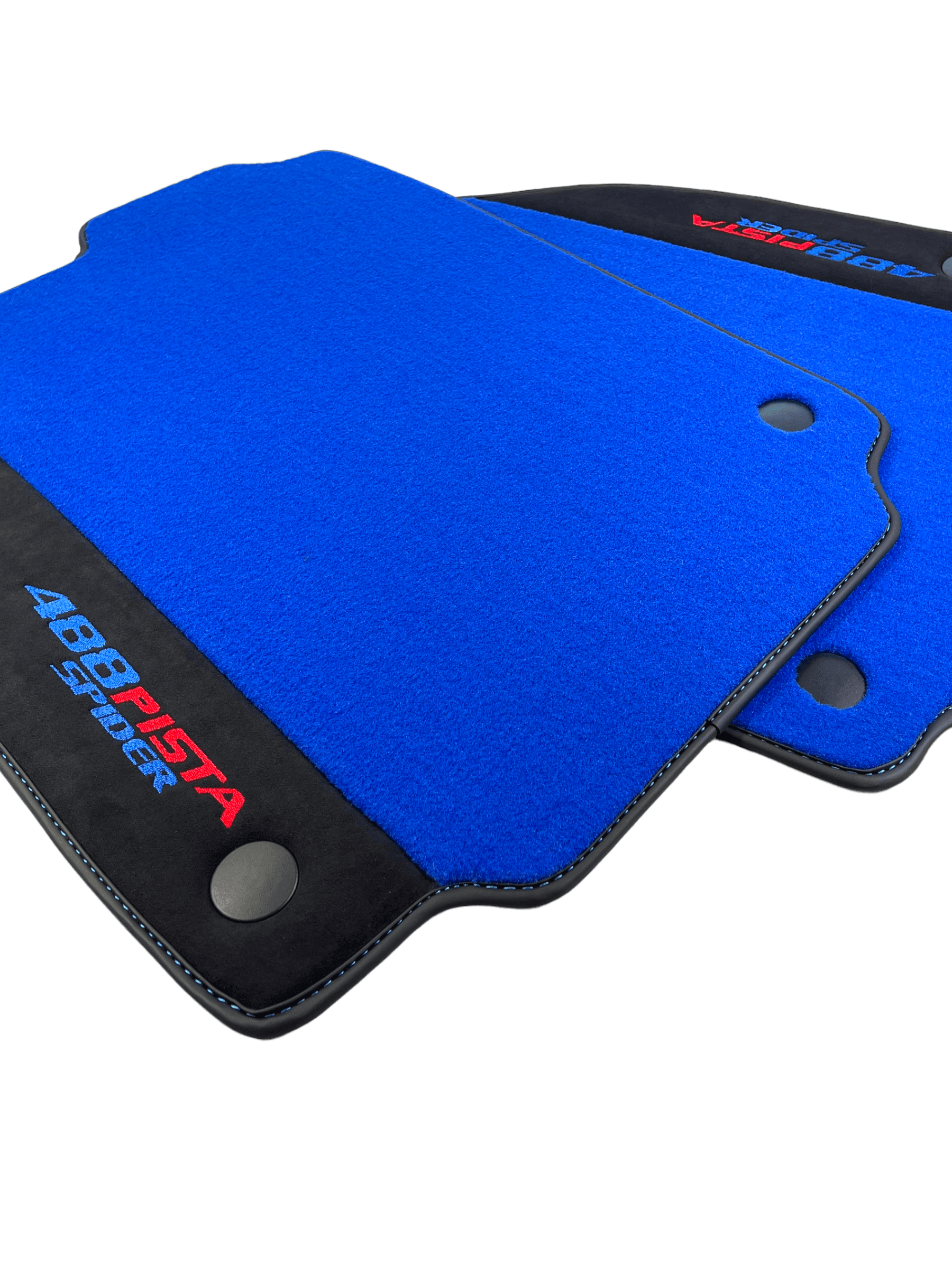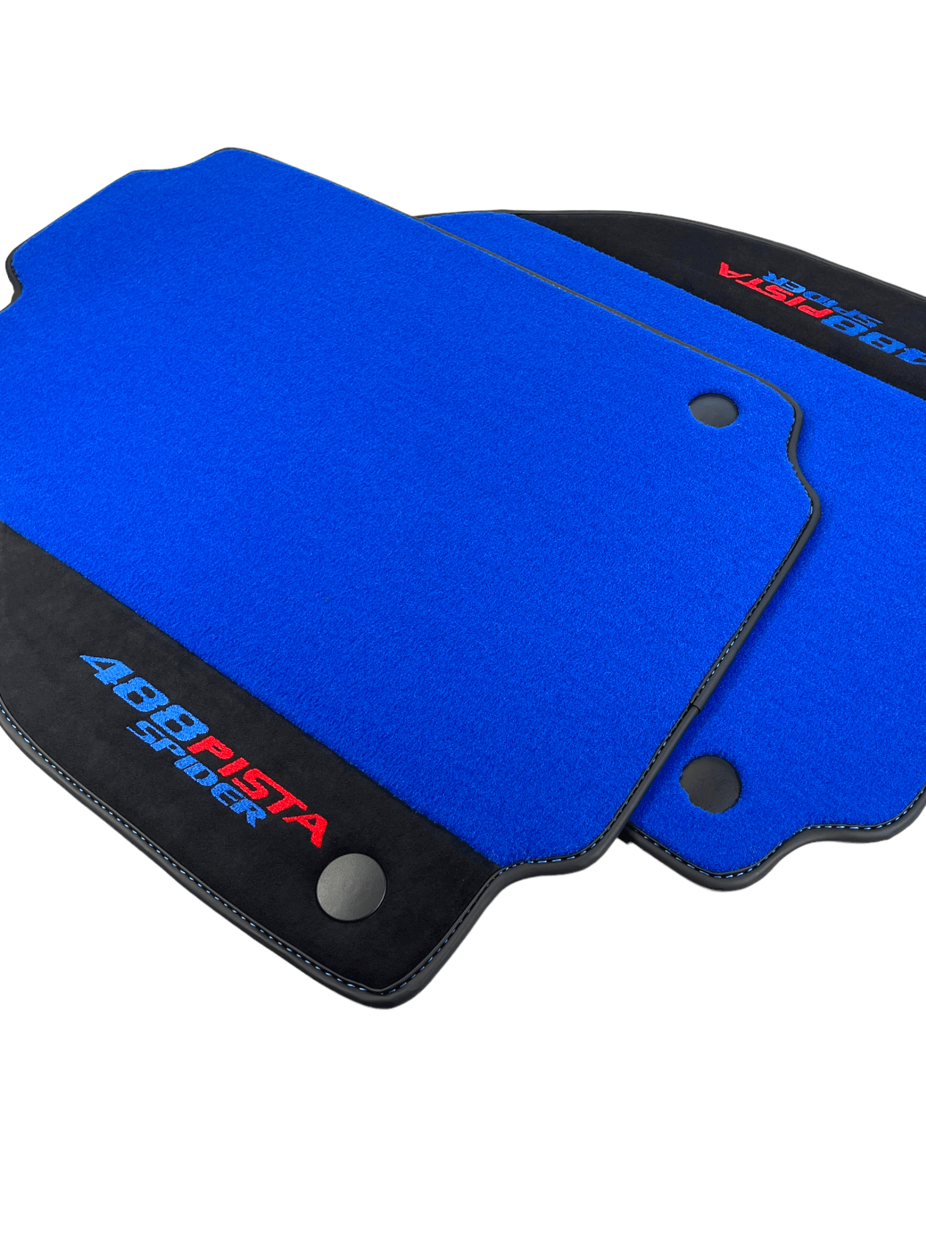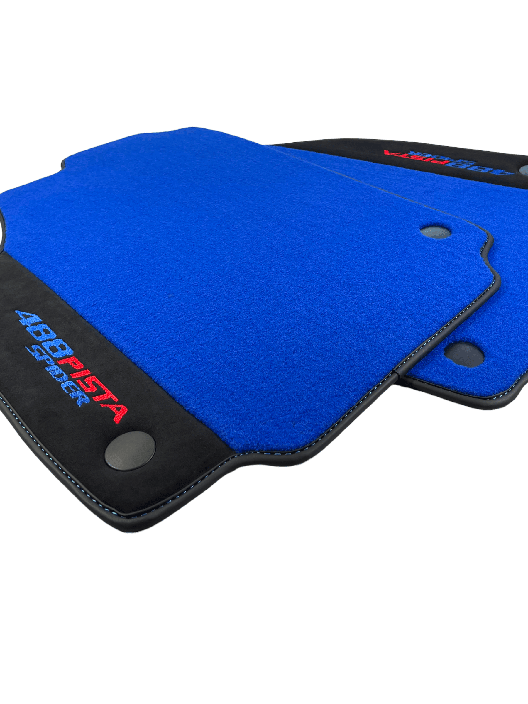 Niebieskie dywaniki samochodowe do Ferrari 488 Pista Spider 2019-2021 z Alcantarą