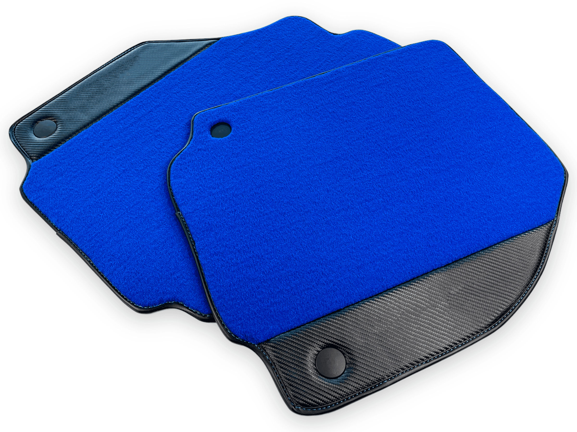 Niebieskie dywaniki samochodowe do Ferrari 488 Pista Spider 2019-2021 z skóry węglowej