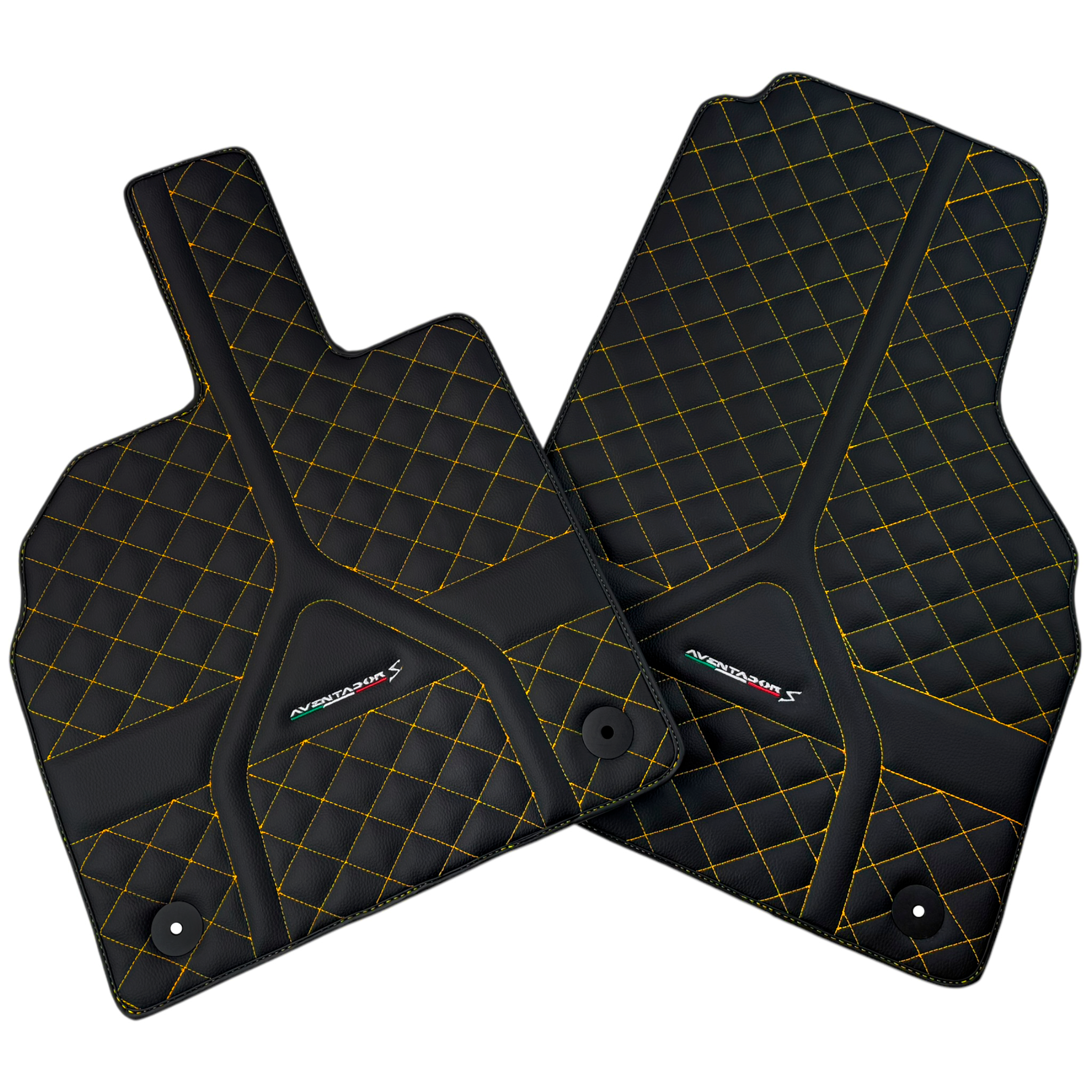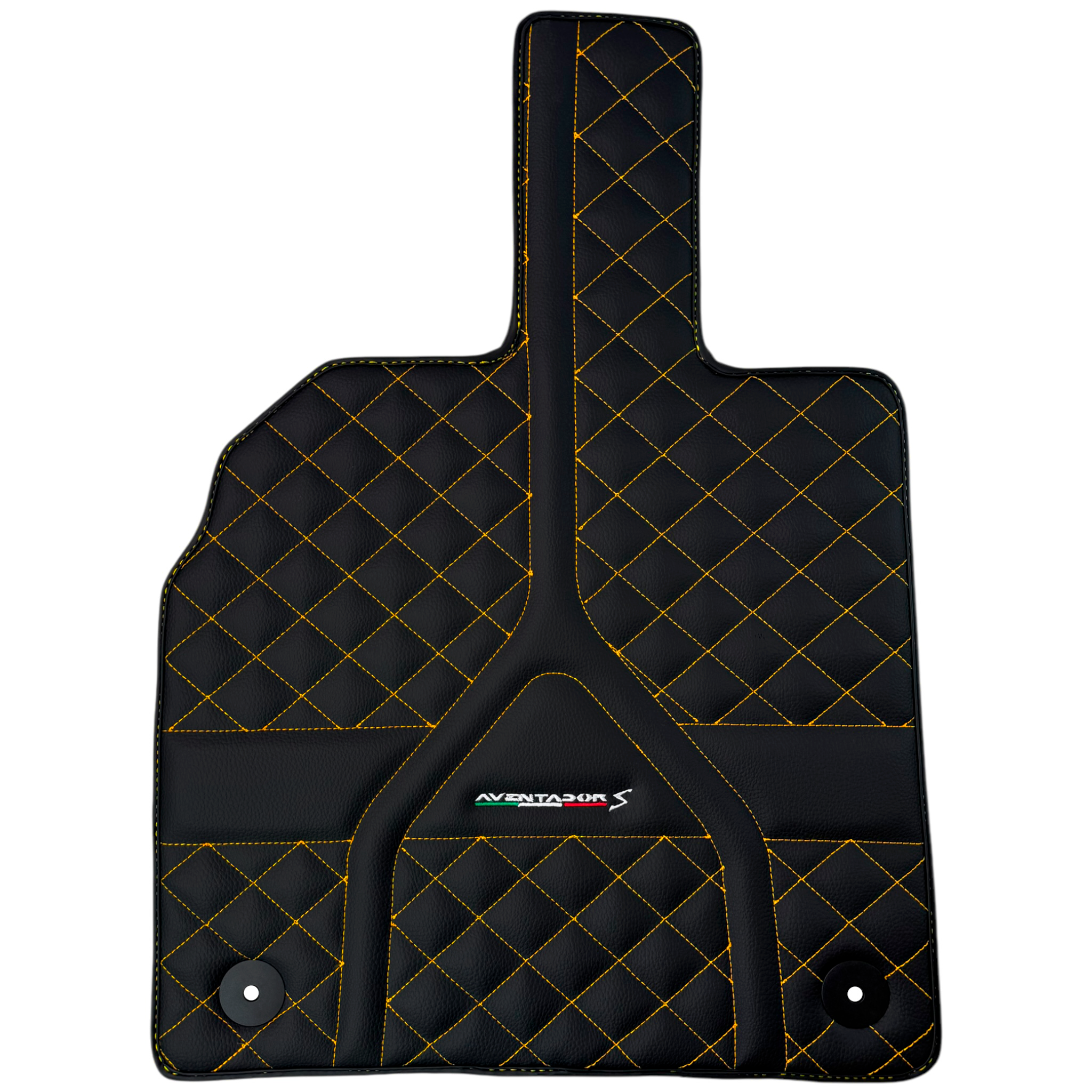 Personalizowane czarne dywaniki skórzane do Lamborghini Aventador S | Żółte przeszycia