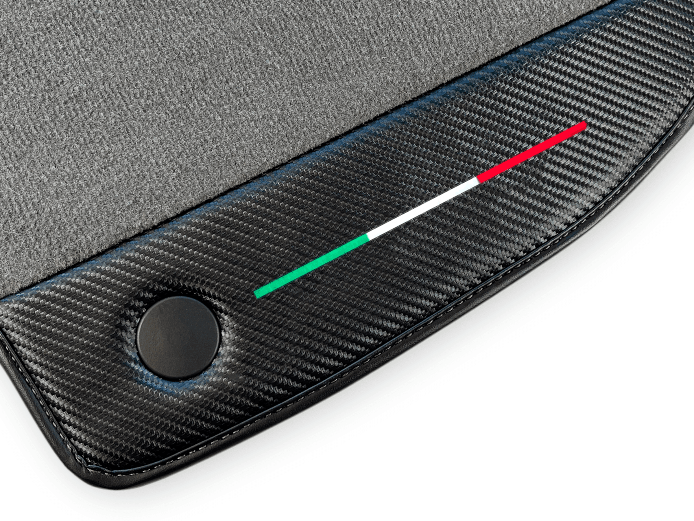 Prezentujemy dywaniki samochodowe w kolorze szarym najwyższej jakości do Twojego Ferrari F8 Tributo. Wykonane z karbonowej skóry, te dywaniki zapewniają doskonałą trwałość i styl. Chroń podłogę swojego samochodu, dodając odrobinę luksusu z tymi dopasowanymi dywanikami. Jeźdź z pewnością i stylem.