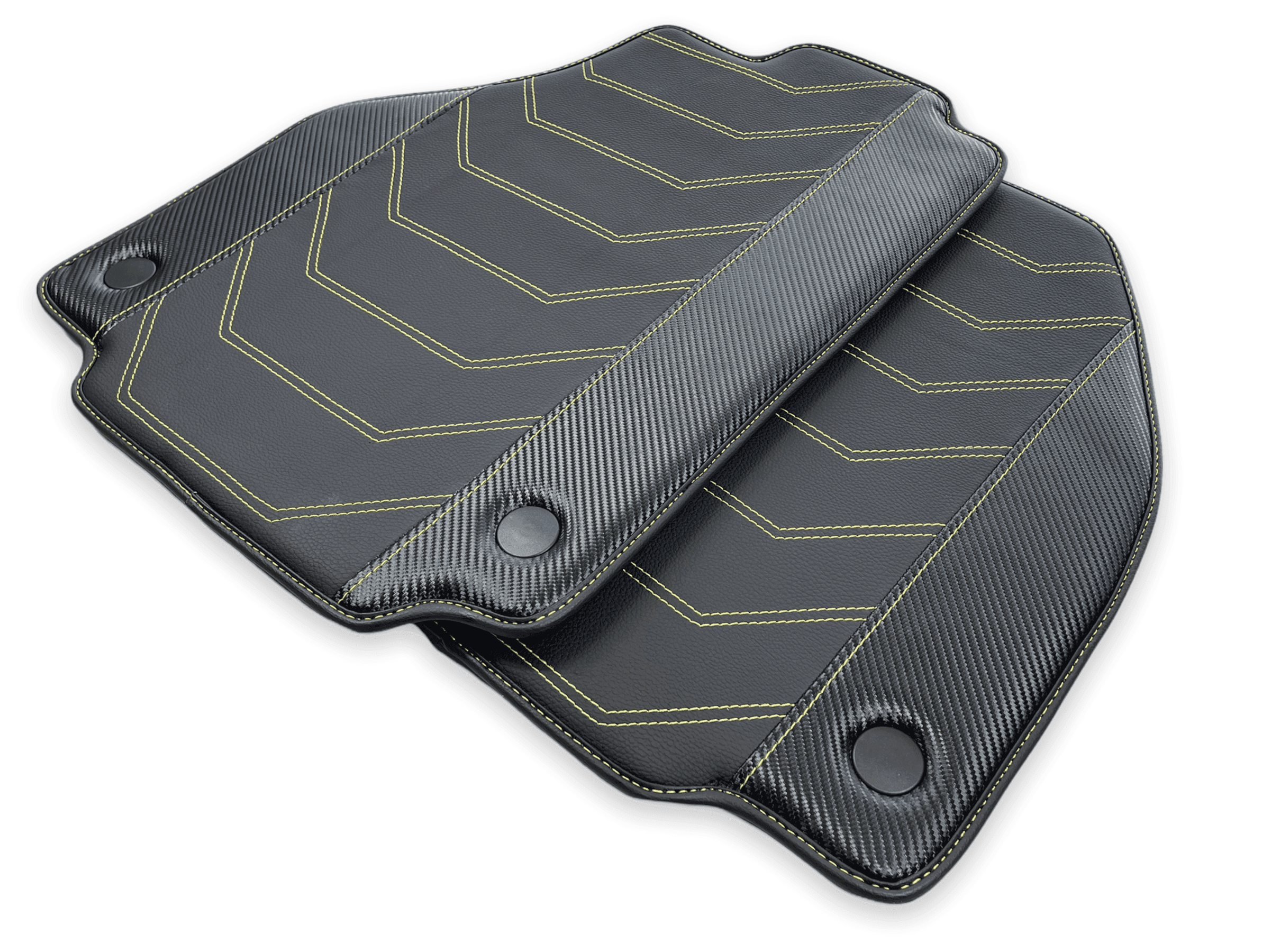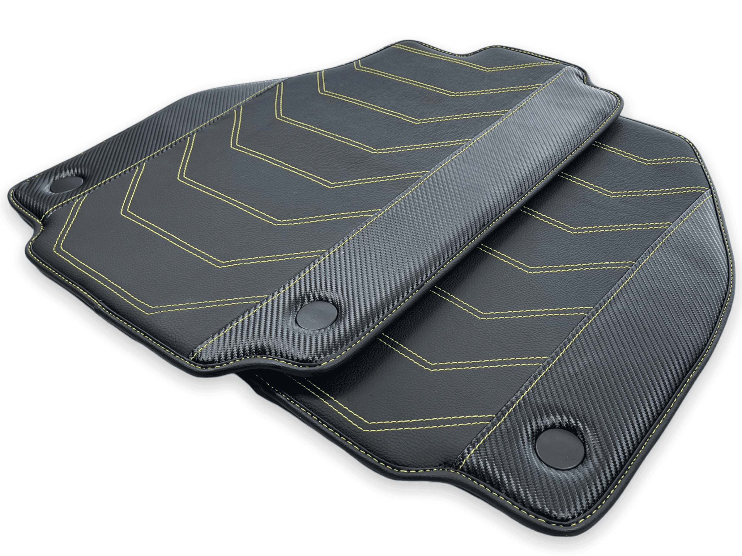 Skórzane dywaniki samochodowe do Ferrari 458 GT2 2012-2015 czarne z żółtym szwem