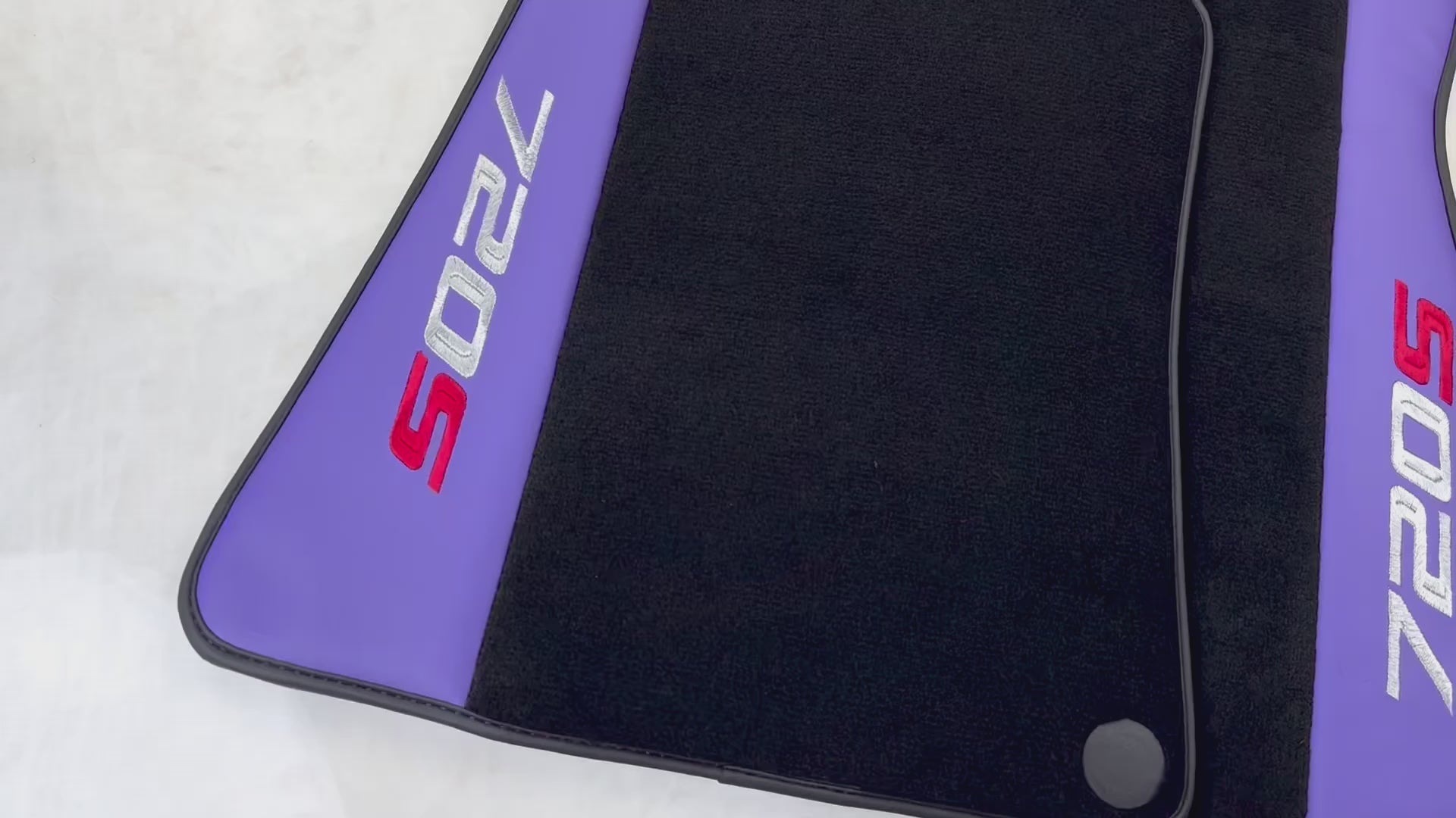 Skrupulatnie wykonane dla McLaren 720S, te dywaniki samochodowe mają luksusowe fioletowe skórzane wykończenie z czarnym trimem. Ulepsz wnętrze swojego pojazdu dzięki temu wysokiej jakości, dopasowanemu akcesorium. Jedź w stylu i komforcie z tymi dywanikami, stworzonymi z myślą o trwałości i wyrafinowaniu.